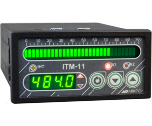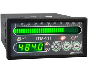 ІТМ-100 - промисловий одноканальний індикатор - вимірювач, призначений для вимірювання температури, тиску, вологості, витрати, рівня та інших фізичних величин у різних галузях промисловості (залежно від давача, який підключається).