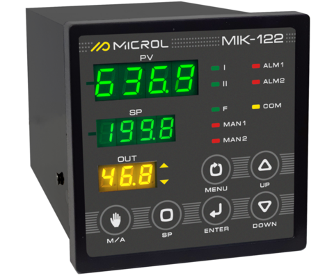 Двоканальний мікропроцесорний регулятор МІК-122 призначений для автоматичного регулювання та контролю технологічних параметрів у промислових процесах. Забезпечує ручне та автоматичне регулювання технологічних параметрів: температури, тиску, рівня, вологості, витрати та інших фізичних величин у різних галузях промисловості. Передбачено два незалежних ПІД регулятори.