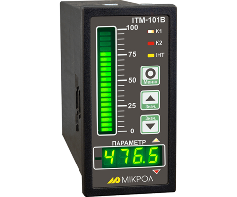 ІТМ-101В - промисловий одноканальний індикатор - вимірювач, призначений для вимірювання температури, тиску, вологості, витрати, рівня та інших фізичних величин у різних галузях промисловості (залежно від давача, який підключається).