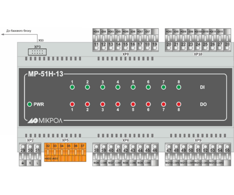 Модуль МР-51Н-12 призначений для розширення функціональних можливостей контролерів та вимірювальних пристроїв серії «МІКРОЛ». Він додає додаткові дискретні входи та виходи, а також один аналоговий вихід, забезпечуючи більшу гнучкість у побудові систем автоматизації.
