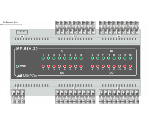 Модуль МР-51Н-32 призначений для розширення функціональних можливостей контролерів та вимірювальних пристроїв серії «МІКРОЛ». Він додає додаткові дискретні входи та виходи, забезпечуючи більшу гнучкість у побудові систем автоматизації.