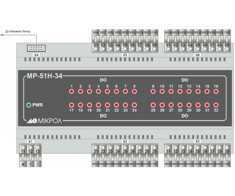 Модуль МР-51Н-34 призначений для розширення функціональних можливостей контролерів та вимірювальних пристроїв серії «МІКРОЛ». Він додає додаткові дискретні входи та виходи, а також один аналоговий вихід, забезпечуючи більшу гнучкість у побудові систем автоматизації.